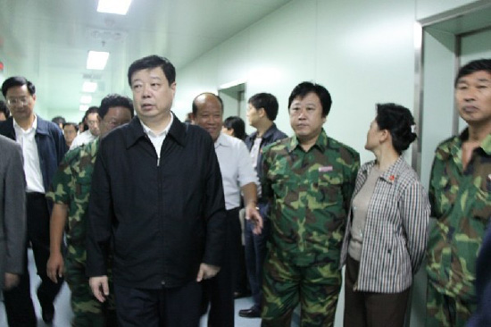 2010年9月25日,由集團公司援建的北川羌族自治縣人民醫(yī)院正式掛牌投入使用。在簡短的開業(yè)儀式之后,中共山東省委書記、省人大主任姜異康參觀、視察了人民醫(yī)院工程建設情況,集團公司總經(jīng)理朱九洲、副總經(jīng)理閆鵬、援川指揮部總指揮孫孔喜等陪同。在參觀、視察過程中,姜異康書記對濰坊和昌大的援建工作給予了充分肯定,并代表省委、省政府對全體援建人員表示感謝和親切慰問。參觀、視察結(jié)束后,援建人員齊唱“濰坊援建之歌”,獻給山東的親人。 ![]() 總經(jīng)理朱九洲(右三)陪同省委書記姜異康視察援建北川人民醫(yī)院