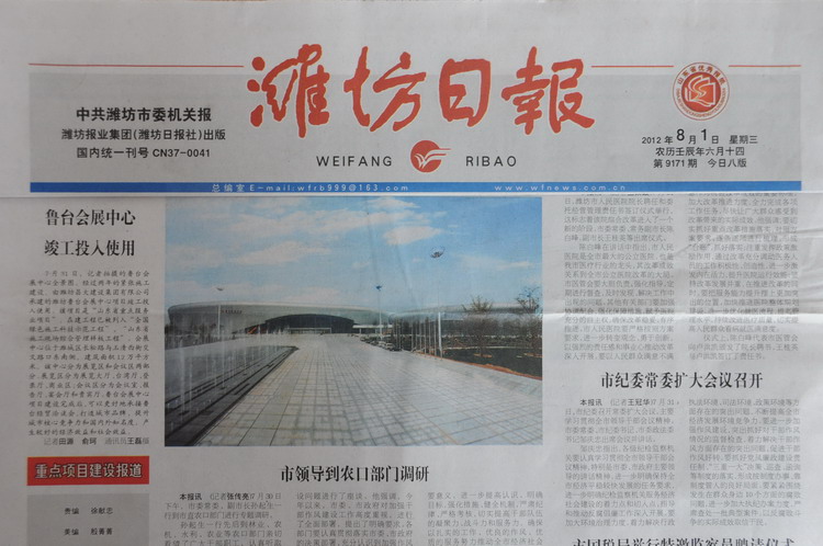 7月31日,經(jīng)過兩年的緊張施工建設(shè),由濰坊昌大建設(shè)集團(tuán)有限公司承建的濰坊魯臺會展中心項目竣工投入使用。該項目是“山東省重點服務(wù)業(yè)項目”,在建工程已被列入“全國綠色施工科技示范工程”、“山東省施工現(xiàn)場綜合管理樣板工程”。會展中心位于濰城區(qū)長松路與玉清街交叉路口東南側(cè),建筑面積12萬平方米,該中心分為展覽區(qū)和會議區(qū)兩部分。 展覽區(qū)分為展覽大廳、臺灣廳、登錄廳、商業(yè)區(qū);會議區(qū)分為會議室、報告廳、宴會廳和貴賓廳。魯臺會展中心項目建設(shè)完成后,可以更好的承接魯臺經(jīng)貿(mào)洽談會,打造城市品牌、提升城市核心競爭力和國內(nèi)外知名度,產(chǎn)生較好的經(jīng)濟(jì)效益和社會效益。