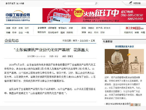 “山東省建筑產(chǎn)業(yè)現(xiàn)代化生產(chǎn)基地”花落昌大——中國工程建設(shè)網(wǎng)“企業(yè)動態(tài)”2014.9.28