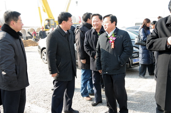 上午10時(shí)58分,在濰坊市政府副市長劉偉的主持下,開工儀式正式開始,濰坊市市政局局長孫萬奎匯報(bào)工程情況。最后,當(dāng)濰坊市委副書記、市長許立全宣布工程開工的霎時(shí),鞭炮齊響,彩煙映天,4臺(tái)吊車將直徑2.4米的水泥管緩緩吊起,展開施工作業(yè)。伴著禮炮噴薄的彩帶,喧天的鑼鼓,震天雷的沖天,和著施工機(jī)械的轟鳴聲,把整個(gè)開工儀式推向了高潮。隨后,市領(lǐng)導(dǎo)們興致勃勃地來到西側(cè)施工現(xiàn)場,觀看了第三分公司的施工作業(yè)。