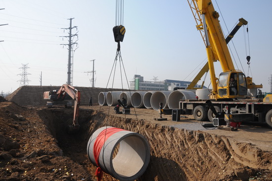 吊裝第一根排污管道