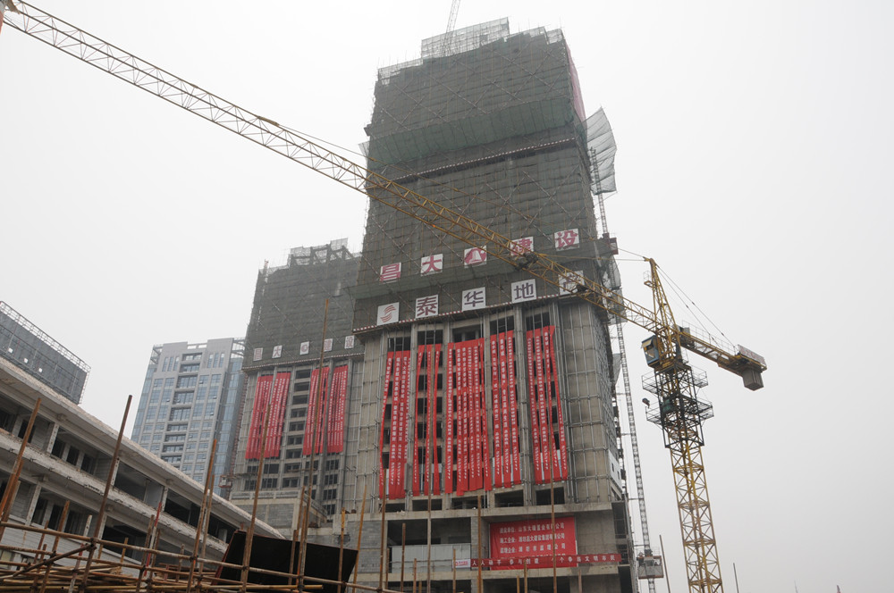 上圖為封頂后的泰華城•榮觀華府工程主體