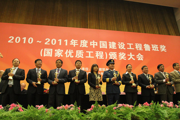 11月7日,由中國建筑業(yè)協(xié)會主辦的2010-2011年度中國建設(shè)工程魯班獎(國家優(yōu)質(zhì)工程)頒獎大會在北京人民大會堂隆重舉行。集團(tuán)公司董事長徐鵬強(qiáng)以及魯班獎工程——北川人民醫(yī)院承建單位、參建單位代表胡曰俊、于社強(qiáng)參加頒獎大會。參加本次大會的有各省、自治區(qū)、直轄市建筑業(yè)協(xié)會(聯(lián)合會、施工行業(yè)協(xié)會),有關(guān)行業(yè)建設(shè)協(xié)會和其他相關(guān)單位的負(fù)責(zé)人以及獲得魯班獎的承建單位和參建單位代表共計1500余人。