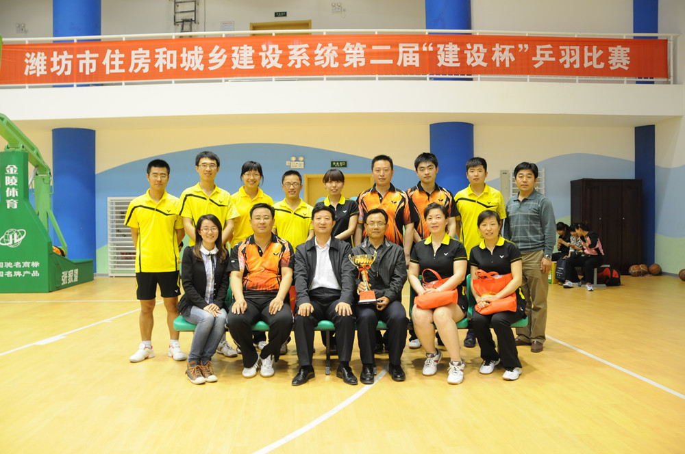 4月26日至28日,濰坊市建設系統(tǒng)迎“五一”第二屆“建設杯”乒羽比賽在濰坊藝術(shù)中心舉行,共有來自市建設系統(tǒng)的12支代表隊、百余名運動員參加了乒乓球和羽毛球的比賽。集團公司派出的乒羽代表隊獲得團體總分第一名。4月28日下午,在藝術(shù)中心籃球館舉行了頒獎儀式和閉幕式,市建設局副局長李振龍、杜天斌出席閉幕式并為獲獎運動員以及代表隊頒獎。集團公司監(jiān)事會主席、黨委副書記、紀委書記滕忠斌參加閉幕式并代表集團公司領取團體比賽第一名獎杯。