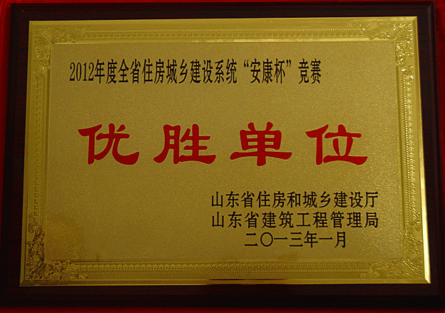 近日,山東省住房和城鄉(xiāng)建設(shè)廳、山東省建筑工程管理局發(fā)布2012年度山東省建設(shè)系統(tǒng)“安康杯”競賽活動評選結(jié)果,集團(tuán)公司榮獲2012年度全省住房城鄉(xiāng)建設(shè)系統(tǒng)“安康杯”競賽優(yōu)勝單位稱號。