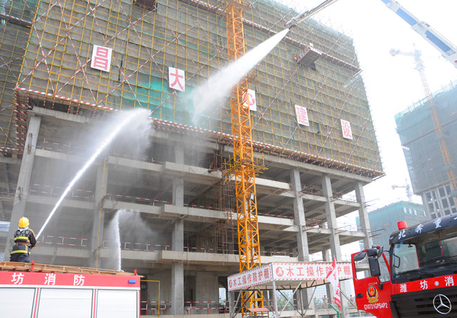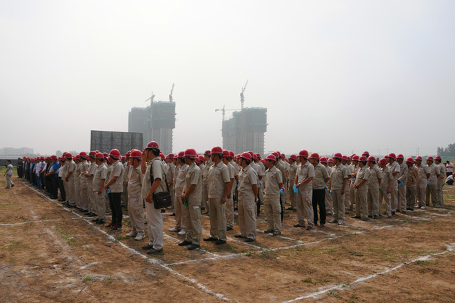 為切實推進施工現(xiàn)場消防安全管理,提高全員消防應變能力,以實際行動開展好“六月安全月”活動,2013年6月5日上午,集團公司在高新區(qū)中央商務區(qū)施工現(xiàn)場組織了大型消防演練活動。來自各基層單位分管生產(chǎn)的經(jīng)理、工程管理人員,施工現(xiàn)場專職安全員,演練現(xiàn)場三個分公司的全體管理人員和勞務專業(yè)隊伍,高新區(qū)工程建設、總承包、監(jiān)理單位以及勞務分包單位代表等近1000人參加了演練活動。