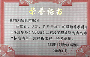 集團(tuán)青島公司綠地項目被評為“標(biāo)準(zhǔn)清單”樣板工程