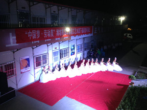 2016年5月27日晚,濰坊市總工會(huì)“中國夢?勞動(dòng)美職工藝術(shù)團(tuán)下基層慰問演出”在集團(tuán)自行開發(fā)、建設(shè)中的泰和東郡工程現(xiàn)場辦公區(qū)進(jìn)行。演出從晚上七點(diǎn)半開始,在一個(gè)半小時(shí)的時(shí)間里,這個(gè)40人的藝術(shù)團(tuán)共演出包括獨(dú)唱、合唱、舞蹈、朗誦等節(jié)目在內(nèi)的12個(gè)節(jié)目。在盛夏即將到來的夜晚,讓職工藝術(shù)沁潤施工現(xiàn)場的勞動(dòng)者。