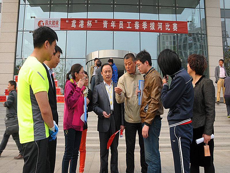 2014年4月11日下午,由集團公司團委倡導、鳶港裝飾工程有限公司發(fā)起并承辦的“鳶港杯”青年員工春季拔河比賽在辦公大樓前廣場舉行。第一分公司、第二分公司、第三分公司、第四分公司、第五分公司、第六分公司、第七分公司、第八分公司、安裝分公司、機施分公司、裝飾分公司、裝飾窗業(yè)分公司、物業(yè)分公司、園林公司、泰和公司、鳶港公司、市政公司以及集團總部共18支代表隊參加比賽。集團高管層領導滕忠斌、李坤明出席比賽活動。