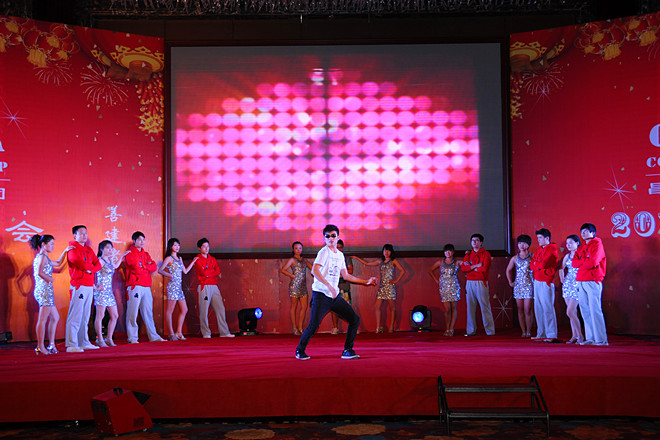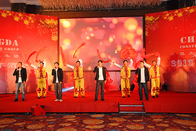 飛雪盛扮鳶都,一派銀裝素裹;瑞氣盈門昌大,處處歌悅舞動。2012年12月30日,雖是嚴寒的“二九一”,卻難掩昌大人如火的激情。此時的昌大,如一艘滿載著龍年盛運的航母,徐徐??扛蹫?hellip;…這一年,昌大人全面發(fā)力穩(wěn)增長,調(diào)整結構促轉型,在實踐自己城市綜合運營商目標的征程上大踏步前進,經(jīng)濟技術、理念文化、品牌建設、思想道德實現(xiàn)歷史新突破,社會貢獻率實現(xiàn)新增長,特別是會展中心工程順利交付使用,卡納圣菲高端地產(chǎn)項目圓滿開放,高新花園住宅小區(qū)國優(yōu)工程成功創(chuàng)建,北海路南擴工程高標準建成,在整個行業(yè)持續(xù)低迷的情況下,集團的綜合實力再次得到彰顯。一個“近者悅,遠者來”、有尊嚴的幸福昌大正在得到全面的建設;而在這一天,昌大人以自己的方式舉辦了2013年的新年酒會,歌舞慶龍年,金蛇迎祥瑞。 總經(jīng)理朱九洲在新年致辭中,重點回顧了集團一年來的發(fā)展歷程。集團的各項事業(yè)取得了新的成績。 在這瑞雪映照、喜氣祥和的新年酒會上,集團員工自編自演自導了13個文藝節(jié)目,有第四、第八、安裝分公司自創(chuàng)的舞蹈《鮮花的祝?!罚坏谝?、第四、第五、安裝分公司自編的舞蹈《江南STYLE》;機施分公司自編的小品《超幸福售樓處》,市政公司自創(chuàng)的小品《工地探親》,第七分公司自編舞臺劇《旅途》,第一分公司自創(chuàng)的啞劇《蓋章》;第二、第八分公司合演的相聲《你是我兄弟》;第六分公司和機施分公司自編的MV歌曲《父親》;集團總部和第六分公司合作的歌伴舞《大中國》,第二、第五、第八分公司和泰和公司聯(lián)袂的歌伴舞《舉杯吧,朋友》,市政公司自編歌伴舞《快樂崇拜》;裝飾分公司演出的京劇《轅門射戟》新段;第三分公司自創(chuàng)健美操《淑女愛運動》,這些節(jié)目,或氣勢如宏、或舞美歌悅、或滑稽幽默、或時尚奔放、或優(yōu)雅沉香、或豪放激情,以此盡展昌大人2012年愉悅的心情。與往年相比,今年的文藝演出,規(guī)模更大,節(jié)目類型更多,節(jié)目包裝效果更好,更貼近企業(yè)實際。還有一個最突出的亮點是今年的節(jié)目編排更大范圍地突破了單位界限,實現(xiàn)了單位間的大聯(lián)合大串燒。在年底各項業(yè)務更為繁重的時候,全體演服人員自覺克服工演矛盾,以極大的熱情投入新年酒會的準備工作,許多單位的演員白天忙碌一天,主要靠晚上或加班進行排練,有些演職員因為太勞累病倒了,還堅持排練和工作,表現(xiàn)出了強烈的責任心和極高的集體榮譽感。集團總部相關部門全力保障文藝演出和酒會的各項籌備工作,確保了新年酒會的順利實施。