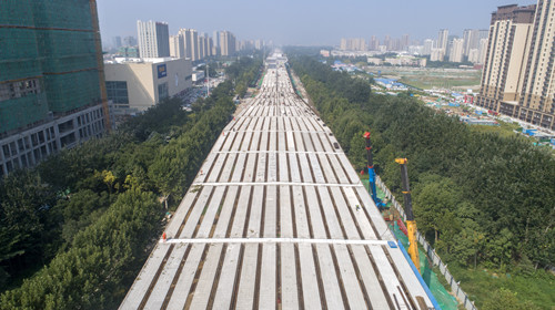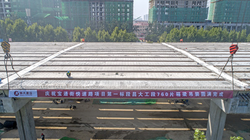 集團(tuán)承建寶通街快速路項目順利進(jìn)入全新節(jié)點(diǎn)——高架箱梁吊裝全部完成