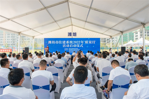 2022年9月1日上午,濰坊全市住建系統(tǒng)2022年“質(zhì)量月”活動在濰坊市東方名著項目現(xiàn)場舉行啟動儀式,市住建局黨組書記、局長鐘光文出席活動,就本次活動提出相關(guān)要求,并與嘉賓一同按下開啟按鍵,拉開了2022年濰坊市“質(zhì)量月”活動序幕。市住建局黨組成員、建筑業(yè)發(fā)展服務(wù)中心主任許增賢出席活動。集團(tuán)公司總裁朱九洲出席啟動儀式并代表施工企業(yè)作表態(tài)發(fā)言。集團(tuán)公司總工程師房海赴臨沂主會場參加活動并接受2021年度優(yōu)質(zhì)結(jié)構(gòu)獎頒獎。 在今天濰坊“質(zhì)量月”活動啟動儀式上,與會人員在現(xiàn)場通過網(wǎng)絡(luò)觀看了全省在臨沂主會場,主題為“推動質(zhì)量變革創(chuàng)新、促進(jìn)質(zhì)量強(qiáng)國建設(shè)、建設(shè)品質(zhì)工程、筑就美好生活”的質(zhì)量月活動啟動儀式。在主會場儀式上,有主會場當(dāng)?shù)仡I(lǐng)導(dǎo)和省廳有關(guān)領(lǐng)導(dǎo)的致辭講話、有部署全省住建系統(tǒng)質(zhì)量月活動安排、觀看《匠心筑夢質(zhì)享未來》工程質(zhì)量提升成果專題片、通報山東省近十年爭創(chuàng)魯班獎和國家優(yōu)質(zhì)工程獎情況、為2021年優(yōu)質(zhì)結(jié)構(gòu)獎代表頒發(fā)證書、為“天元大工匠”代表頒發(fā)證書,建設(shè)、施工、勘察、設(shè)計、監(jiān)理、檢測等行業(yè)代表宣讀關(guān)于落實工程質(zhì)量的倡議書、各地市質(zhì)量提升成果展示等等。在濰坊啟動儀式上,項目建設(shè)單位、總承包施工企業(yè)和監(jiān)理企業(yè)代表作了表態(tài)發(fā)言。 濰坊各縣市、市屬各開發(fā)區(qū)住建局局長、建筑業(yè)中心主任或質(zhì)量安全服務(wù)站站長;中心城區(qū)(奎文、濰城、坊子、寒亭、高新)監(jiān)管機(jī)構(gòu)質(zhì)量監(jiān)督人員代表;高新區(qū)工程項目建設(shè)單位、施工單位、監(jiān)理單位代表 參加會議。 據(jù)悉,今年9月是全國第45個質(zhì)量月。 本次活動還是加強(qiáng)了疫情管控,所有參會人員在近14天均不得途經(jīng)中高風(fēng)險地區(qū)和必須提供48小時核酸陰性證明。