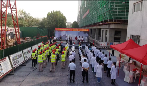 2022年9月28日上午9點(diǎn)58分,由集團(tuán)四建公司總承包施工的東營(yíng)市臨床醫(yī)技綜合實(shí)踐基地一體化建設(shè)項(xiàng)目——臨床醫(yī)技綜合樓封頂儀式在項(xiàng)目現(xiàn)場(chǎng)隆重舉行。 東營(yíng)市人民醫(yī)院黨委書記徐新生、院長(zhǎng)張振海、副院長(zhǎng)岳長(zhǎng)春,集團(tuán)公司董事長(zhǎng)徐鵬強(qiáng)、副總裁王建波,山東新開元建設(shè)項(xiàng)目管理有限公司董事長(zhǎng)宗輝出席封頂儀式。東營(yíng)市人民醫(yī)院黨委書記徐新生宣布“封頂”。 參加封頂儀式的還有:集團(tuán)安裝公司總經(jīng)理劉志偉、裝飾幕墻公司總經(jīng)理付光文,四建公司副總經(jīng)理叢興杰、總經(jīng)理助理馬康文,建設(shè)、監(jiān)理、集團(tuán)四建公司等相關(guān)單位員工代表100余人。