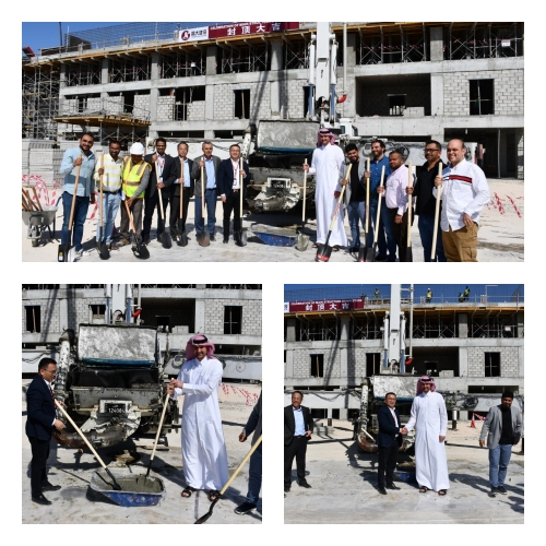 Salam 集團(tuán)CEO Abdul Salam Abu Issa、項(xiàng)目業(yè)主代表Husam、EAS總監(jiān)理工程師Abdelsami、昌大海外公司總經(jīng)理張立志,副總經(jīng)理馮金龍及主要參建人員出席儀式,共同見證3棟宿舍樓結(jié)構(gòu)封頂。