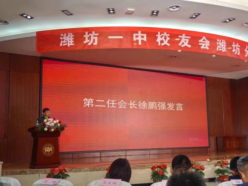 2024年4月6日,濰坊一中在圖書館學(xué)術(shù)報告廳召開了校友會濰坊分會換屆大會,昌大集團(tuán)董事長徐鵬強(qiáng)當(dāng)選濰坊一中濰坊校友分會會長,這也是該組織的第二任會長。