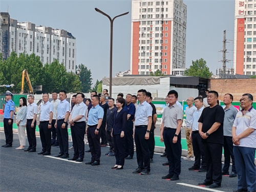 2024年6月30日上午,濰坊市舉行2024年上半年中心城區(qū)城市道路集中通車儀式,主會場設在集團四建公司承建的月河路(健康街-勝利街)工地現場,寒亭區(qū)分會場設在四建公司承建的吉祥街、八建公司承建的云祥街與渤海路路口。集團公司總裁朱九洲出席主會場活動。出席主會場活動的領導和嘉賓有:濰坊市政府副秘書長張勇,濰坊市住建局黨組書記、局長馬冰,濰城區(qū)委副書記、區(qū)長程錦,市住建局黨組成員、副局長盧波,市委宣傳部、市財政局、市自然資源和規(guī)劃局、市住建局、市城管局、市公安局交警支隊分管負責同志,各道路建設指揮部有關負責同志,項目建設單位、施工單位、設計單位、監(jiān)理單位等參建單位代表、人大代表、政協(xié)委員、群眾代表等共約70人。