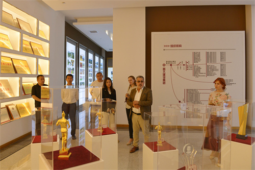來(lái)訪期間,菲祖利先生一行四人先后參觀了昌大建科鋼筋加工、鋼結(jié)構(gòu)以及預(yù)制構(gòu)件車間,第三裝飾幕墻公司門窗加工車間,參觀了集團(tuán)公司企業(yè)展廳、建筑史館。